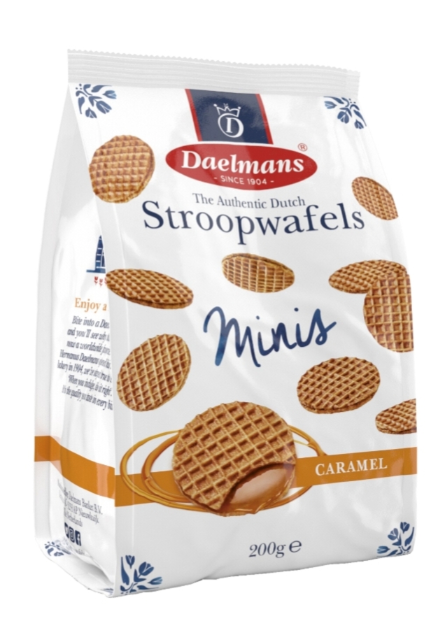 甘香味美的 Daelmans迷你荷式華夫餅是由Daelmans家族成員烘焙. (創立於1909年.) 外面鬆脆, 裡面有香滑的焦糖, 你可直接食用, 或把它放在熱飲上, 一樣滋味無窮!